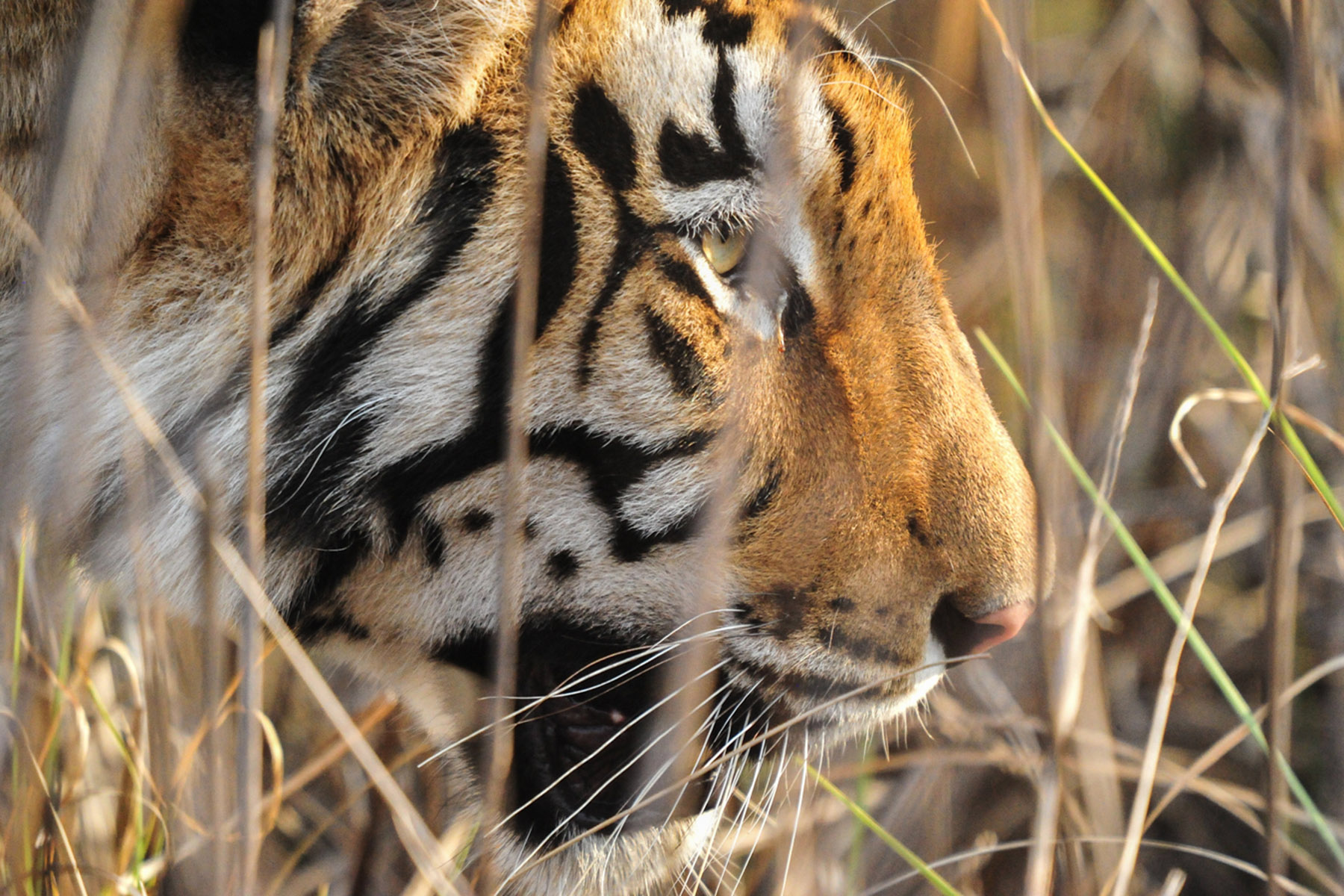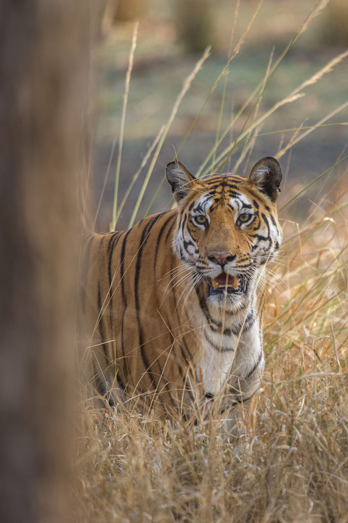 From our open jeeps, we listen closely for warning calls and movement among the trees. Suddenly, a call echoes through the forest — it’s getting closer. Out of nowhere, a tiger silently emerges from the brush, walking straight toward us, crossing the road just meters away before disappearing just as quietly into the teak forest. (B, L, D)
