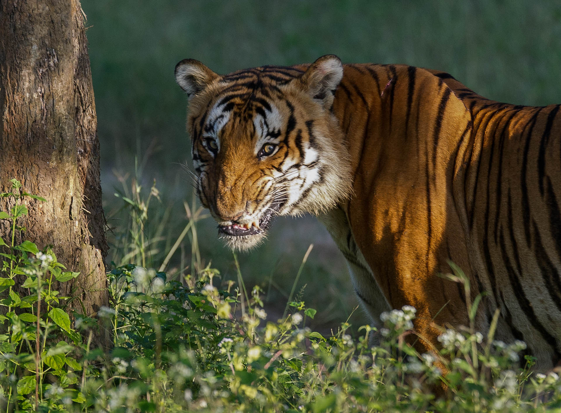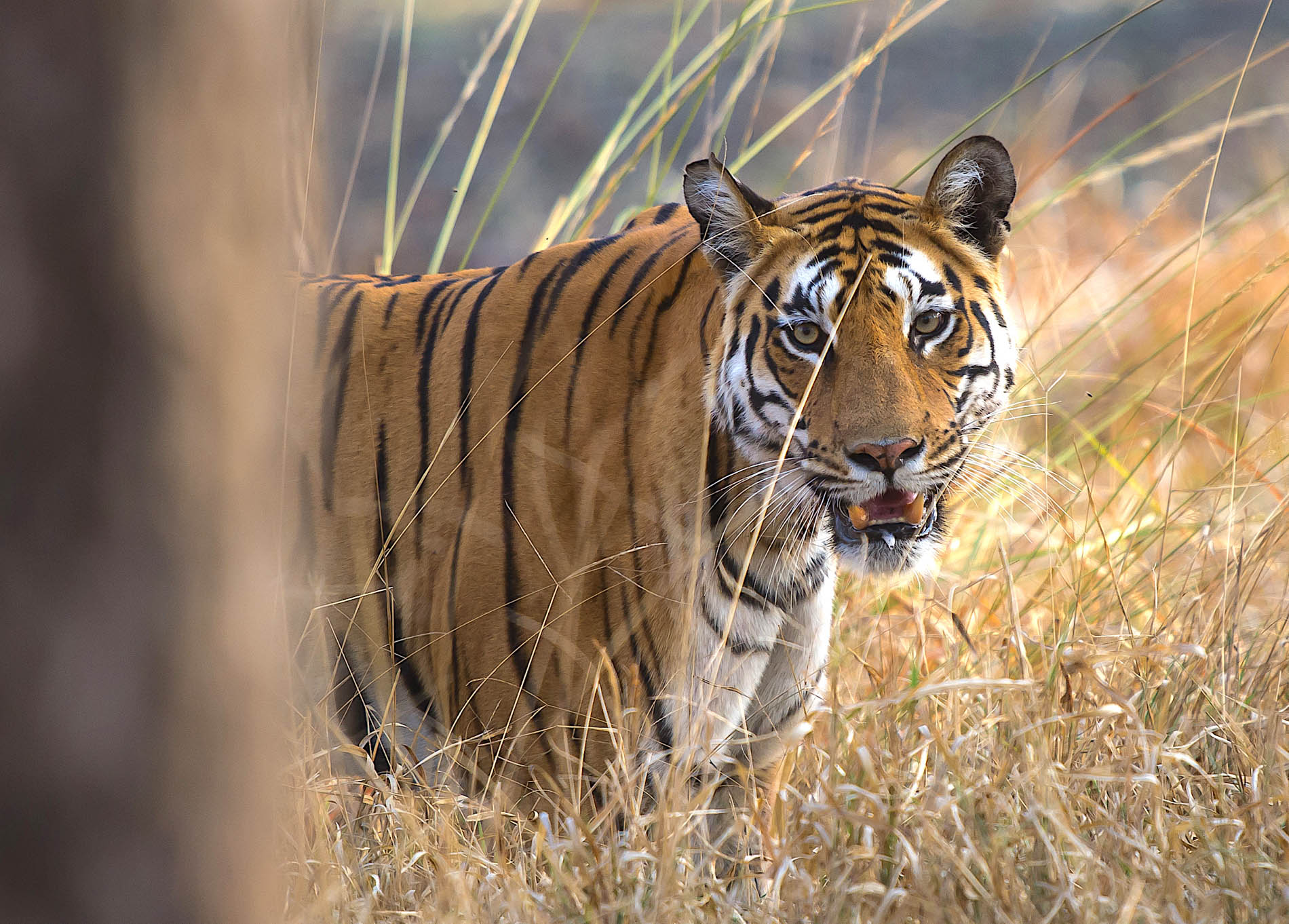From our open jeeps, we listen closely for warning calls and movement among the trees. Suddenly, a call echoes through the forest — it’s getting closer. Out of nowhere, a tiger silently emerges from the brush, walking straight toward us, crossing the road just meters away before disappearing just as quietly into the teak forest. (B, L, D)